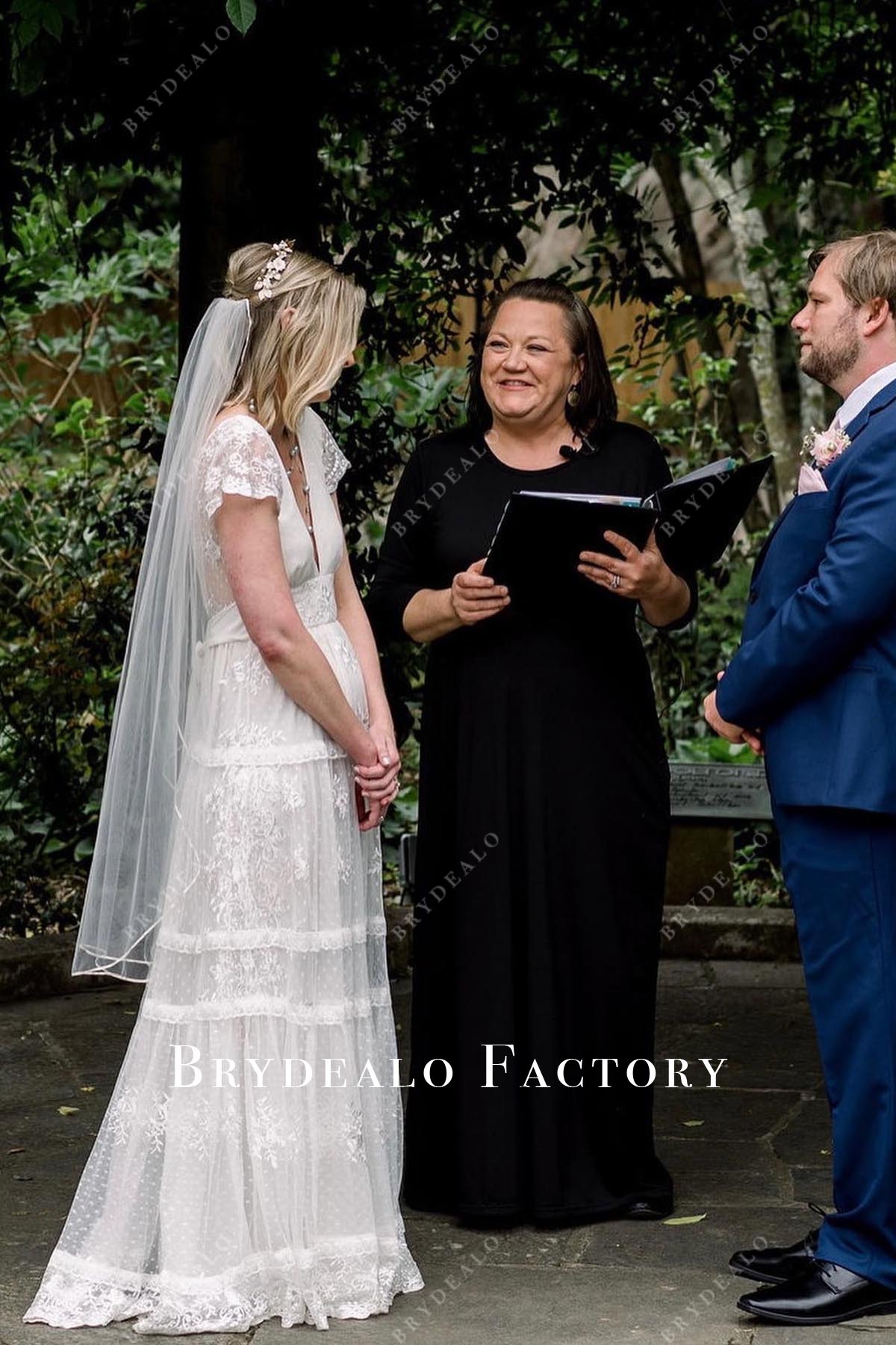 Bohemian Lace Cap Sleeves Tiered A-Line Wedding Dress