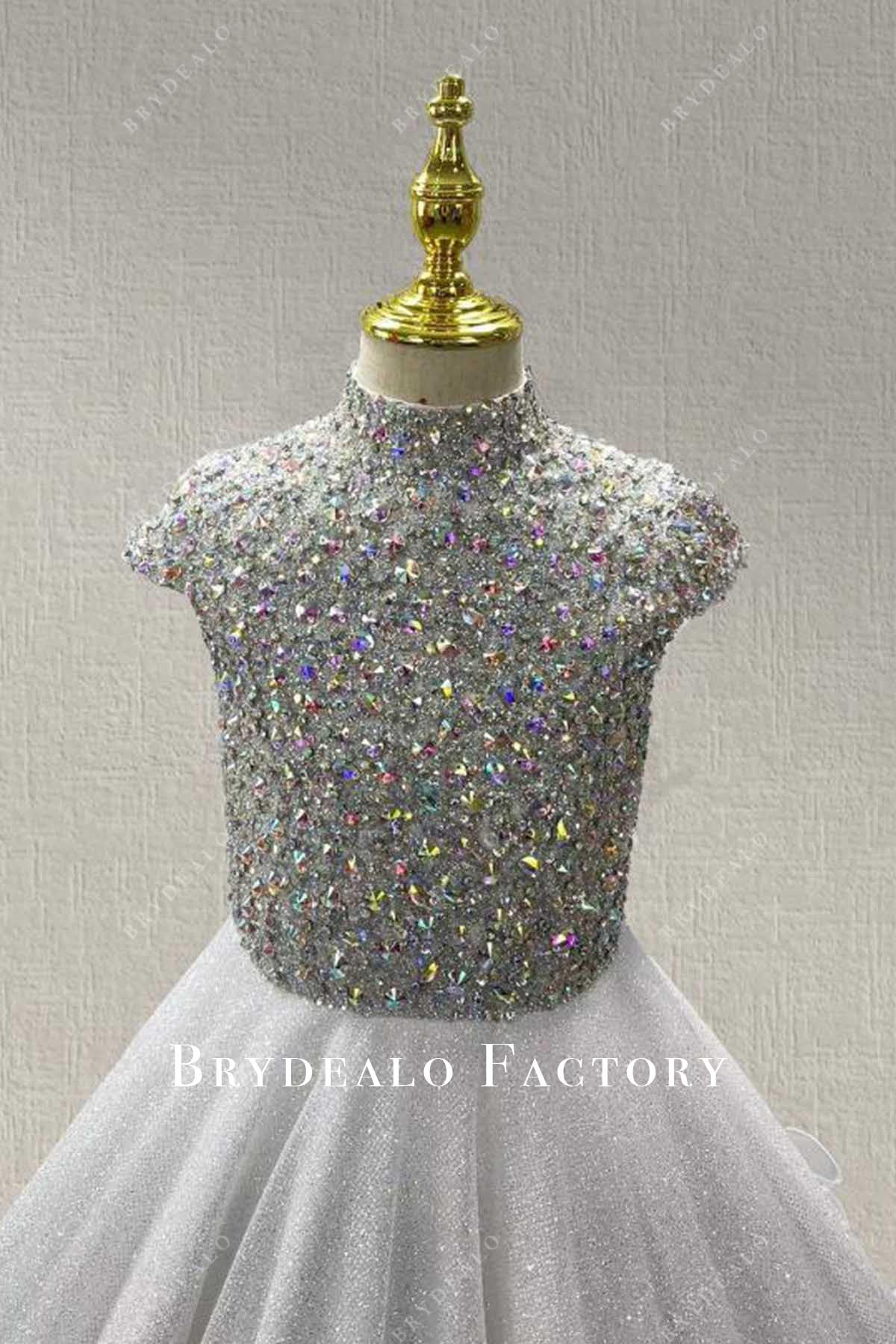 Crystal High Neck Cap Sleeves A-Line Pageant Dress