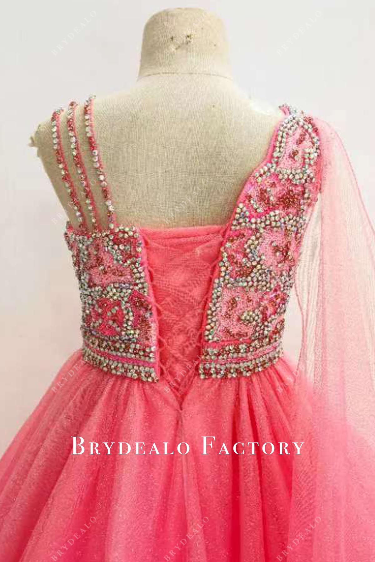 Crystal Pink Asymmetrical Neckline A-Line Sweep Train Pageant Dress