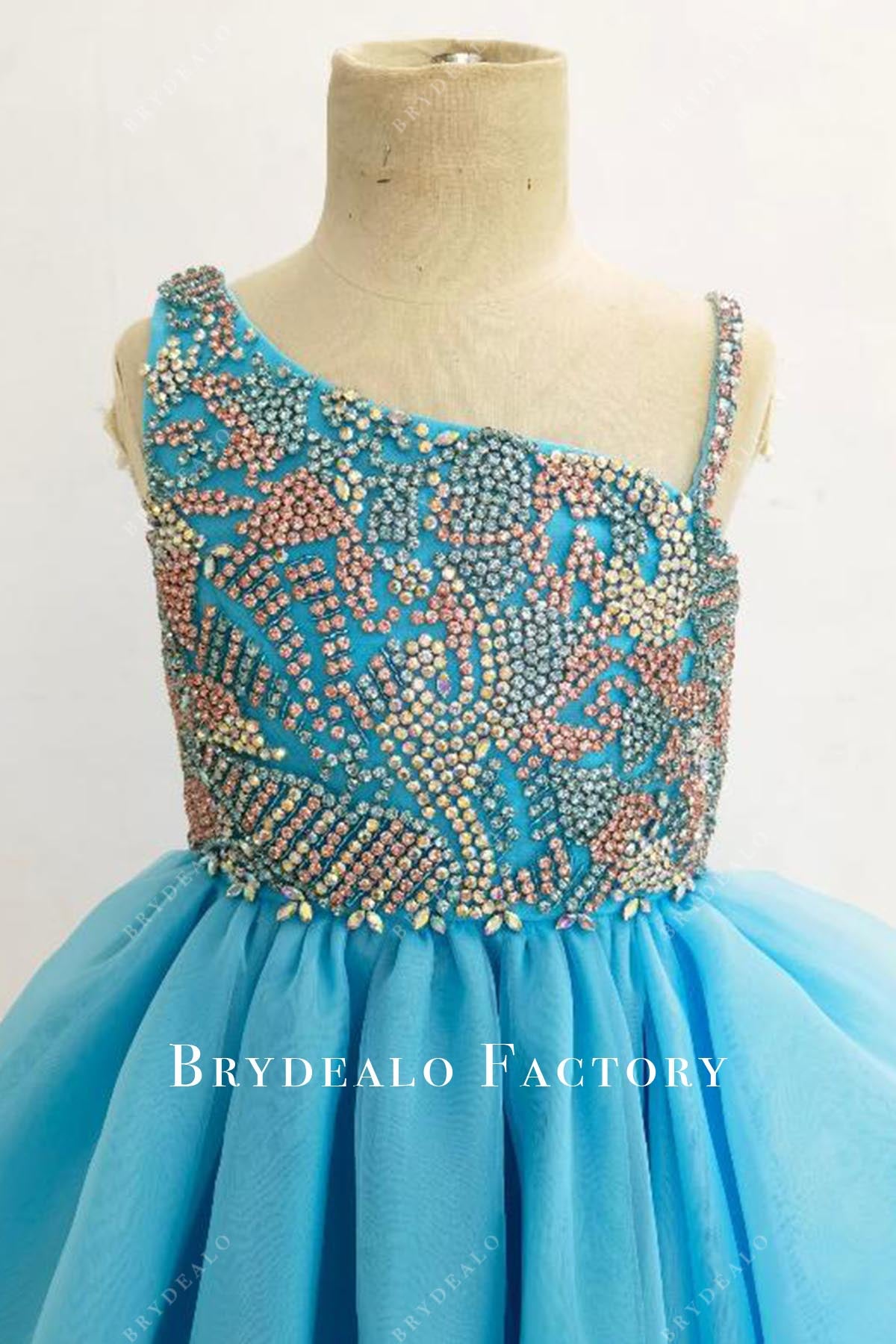 Crystals Asymmetrical Blue A-Line Mis Teen Pageant Dress