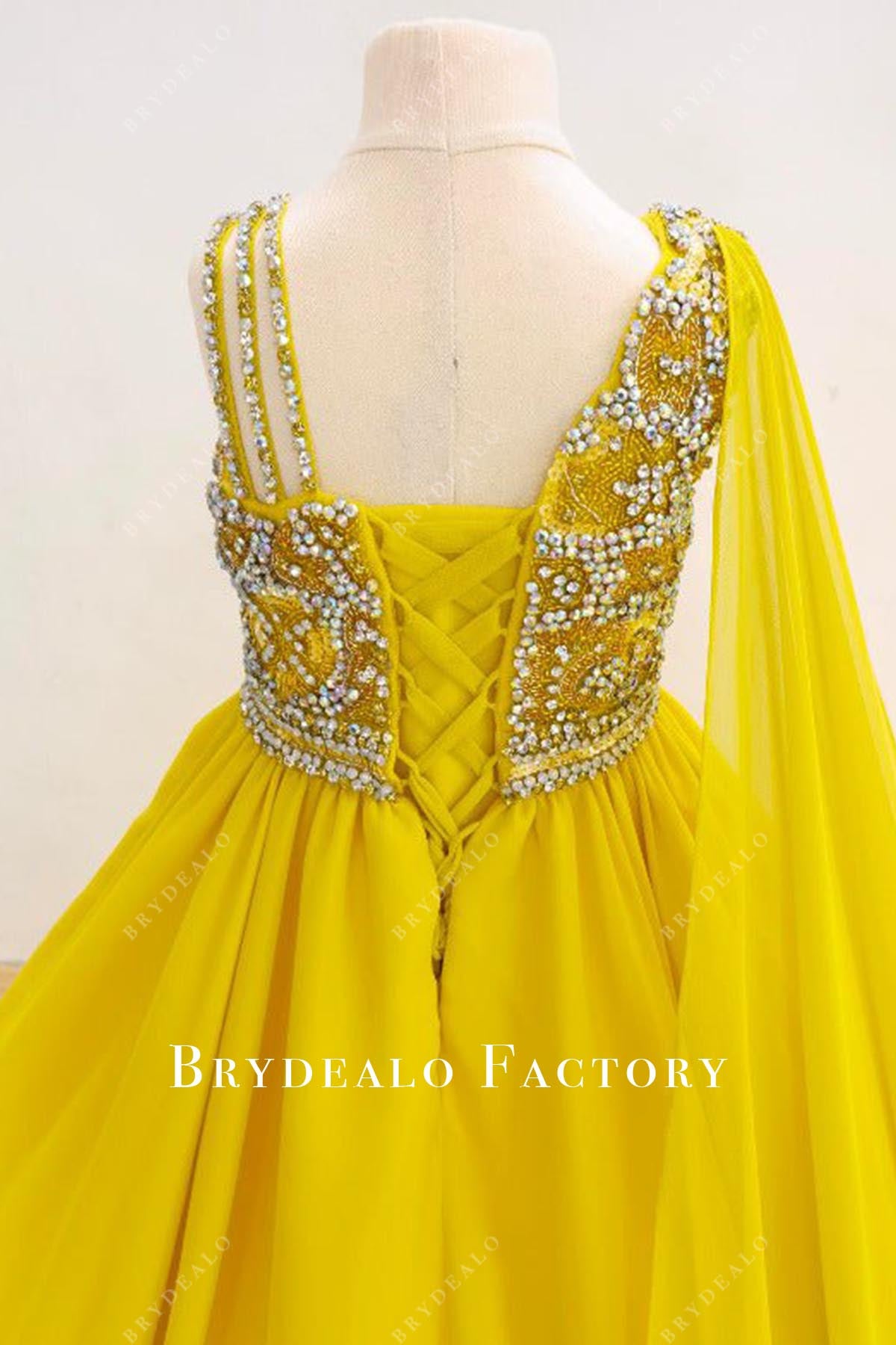 Crystals Asymmetrical Neckline Yellow A-Line Pageant Dress