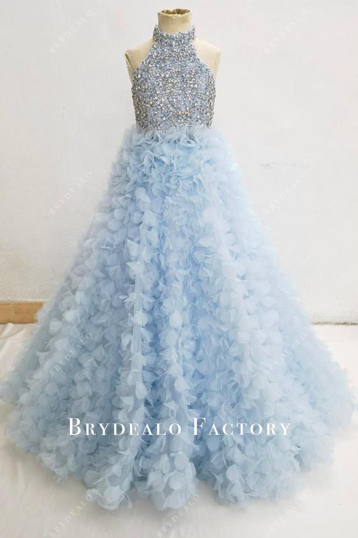 Crystals Halter Ice Blue Ruffled A-Line Pageant Dress