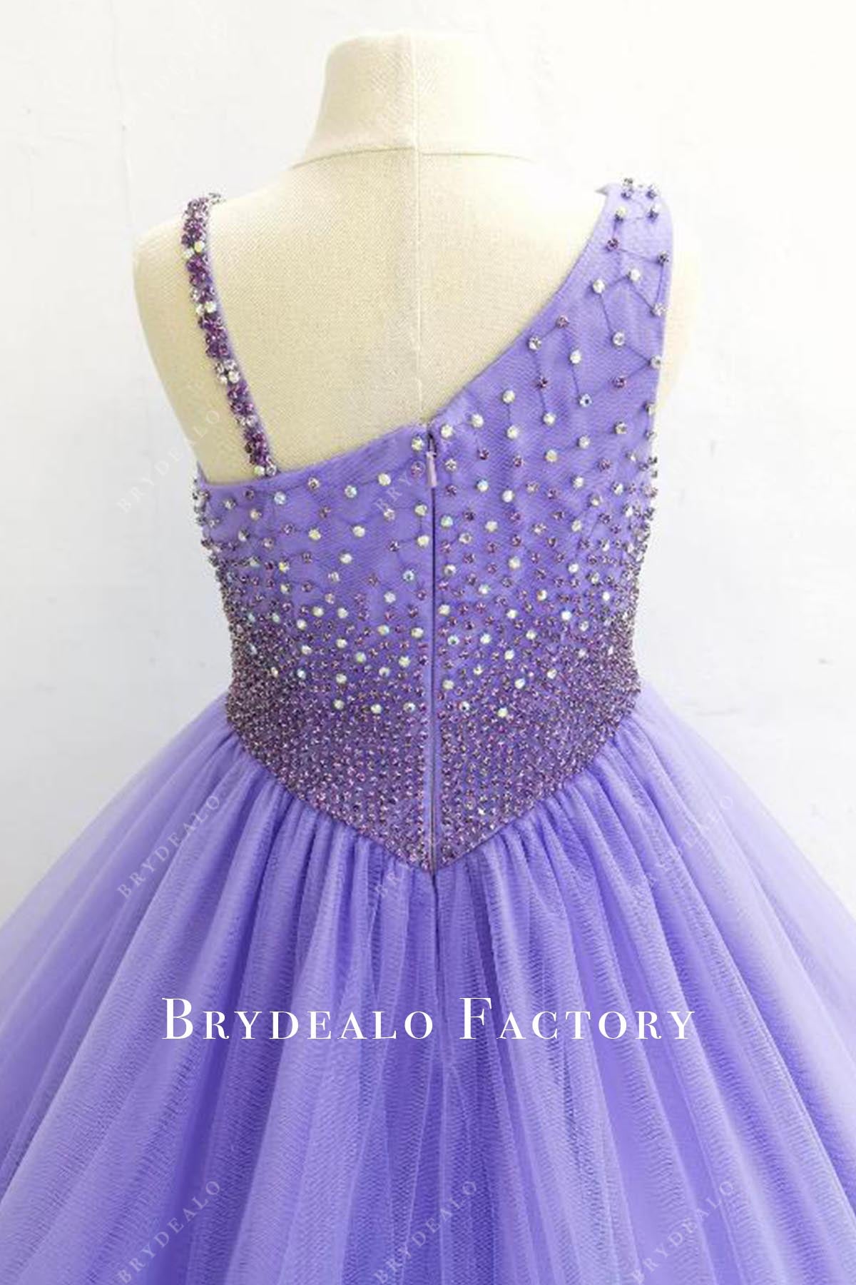 Crystals Purple Asymmetrical Ruffled A-Line Pageant Dress