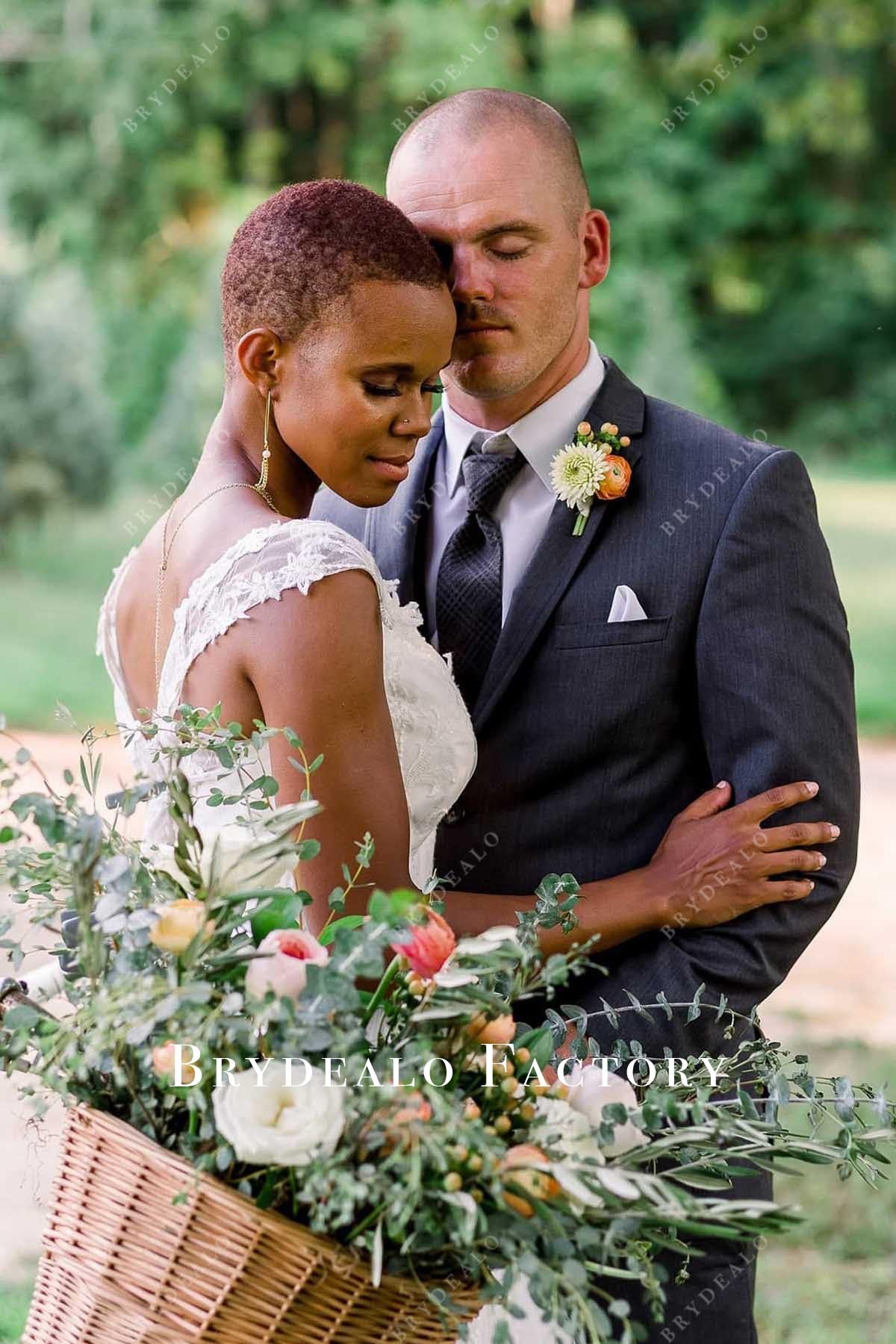 Say "I do" in this romantic A-line wedding dress featuring delicate lace cap sleeves, a plunging neckline, and a sweeping long train. Elegant and timeless, it’s designed to make your walk down the aisle unforgettable.
