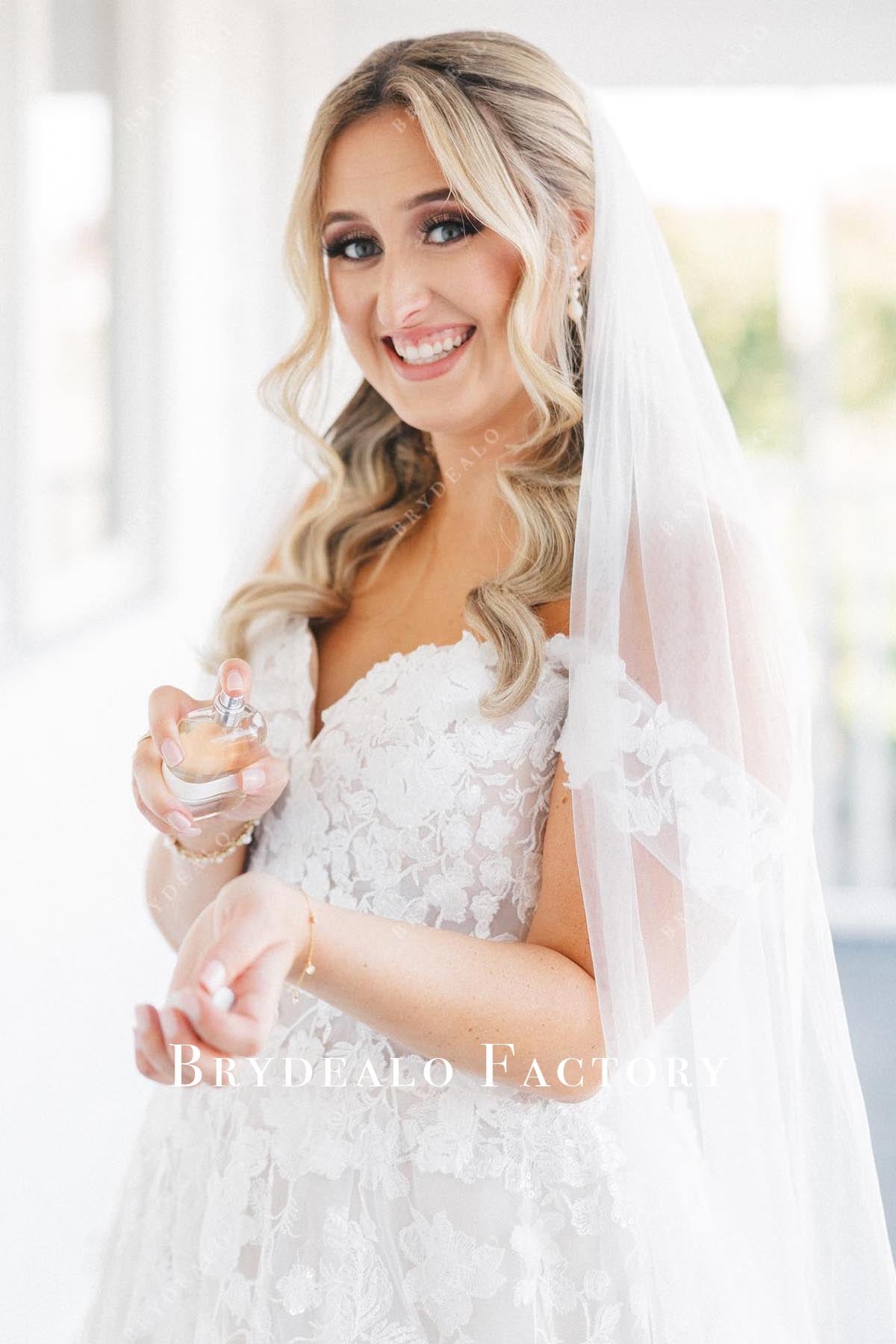Delicate Lace Off Shoulder A-Line Wedding Dress