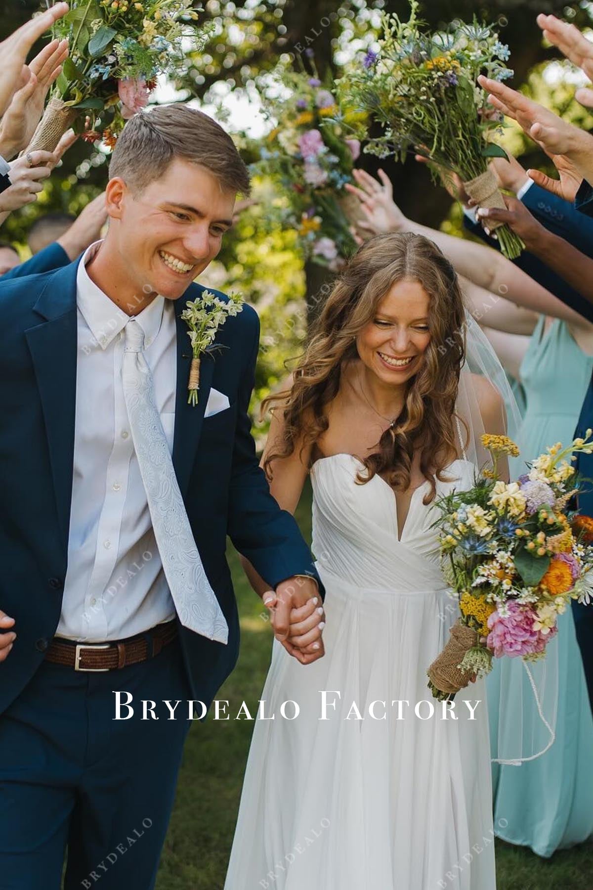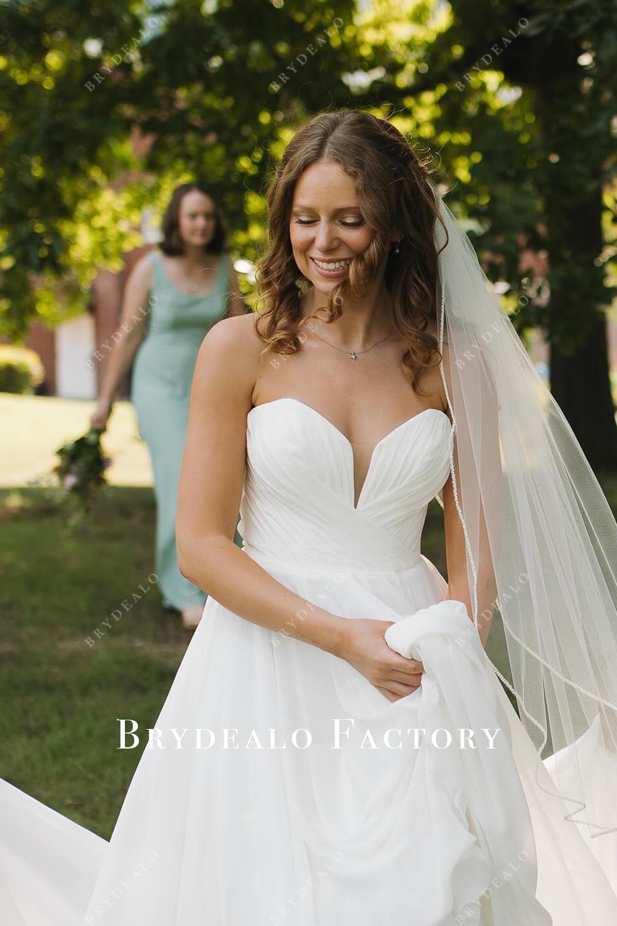 Elegant Pleated Strapless V-Neck A-Line Wedding Dress