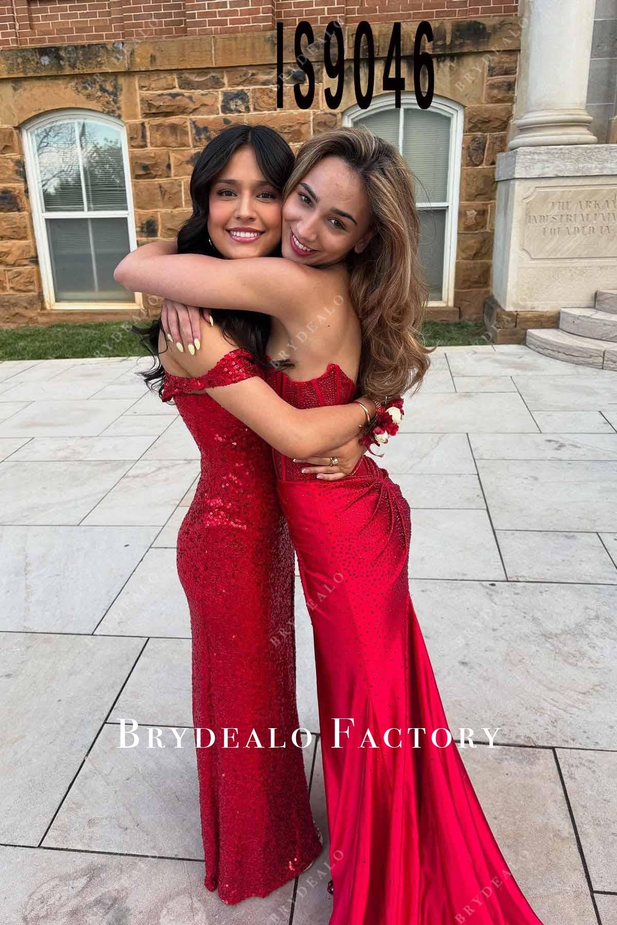 Shine bright in this glitter red prom dress. Featuring a strapless V-neckline, curve-hugging mermaid silhouette, and a dramatic court train—perfect for making a grand entrance on prom night.