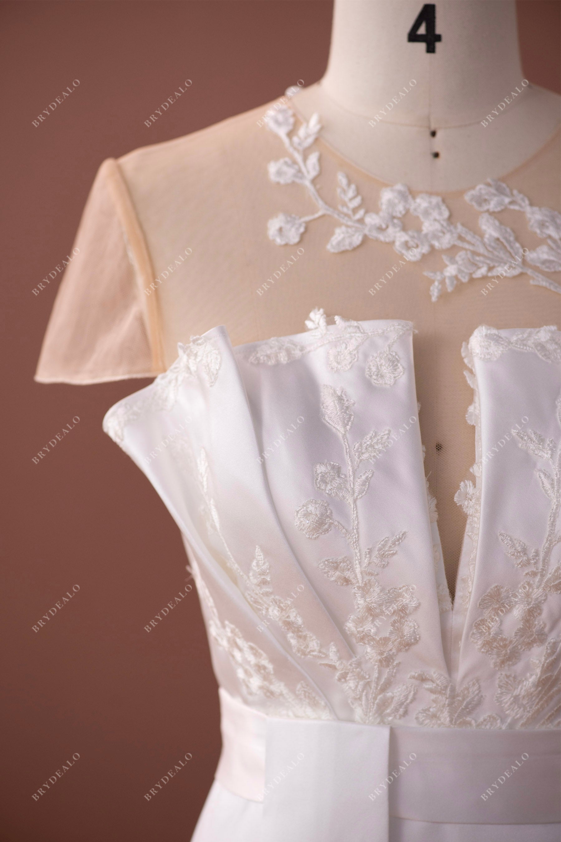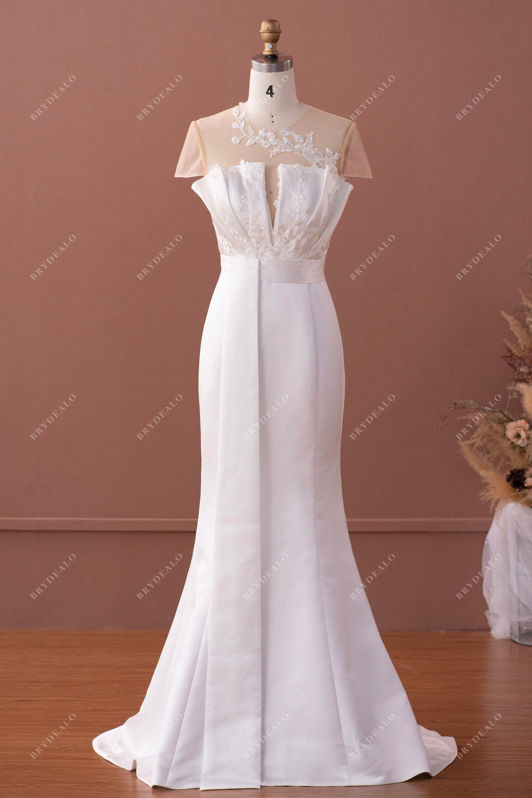 Designer Ruffled Satin Inclined Buttoned Back Mermaid Bridal Gown