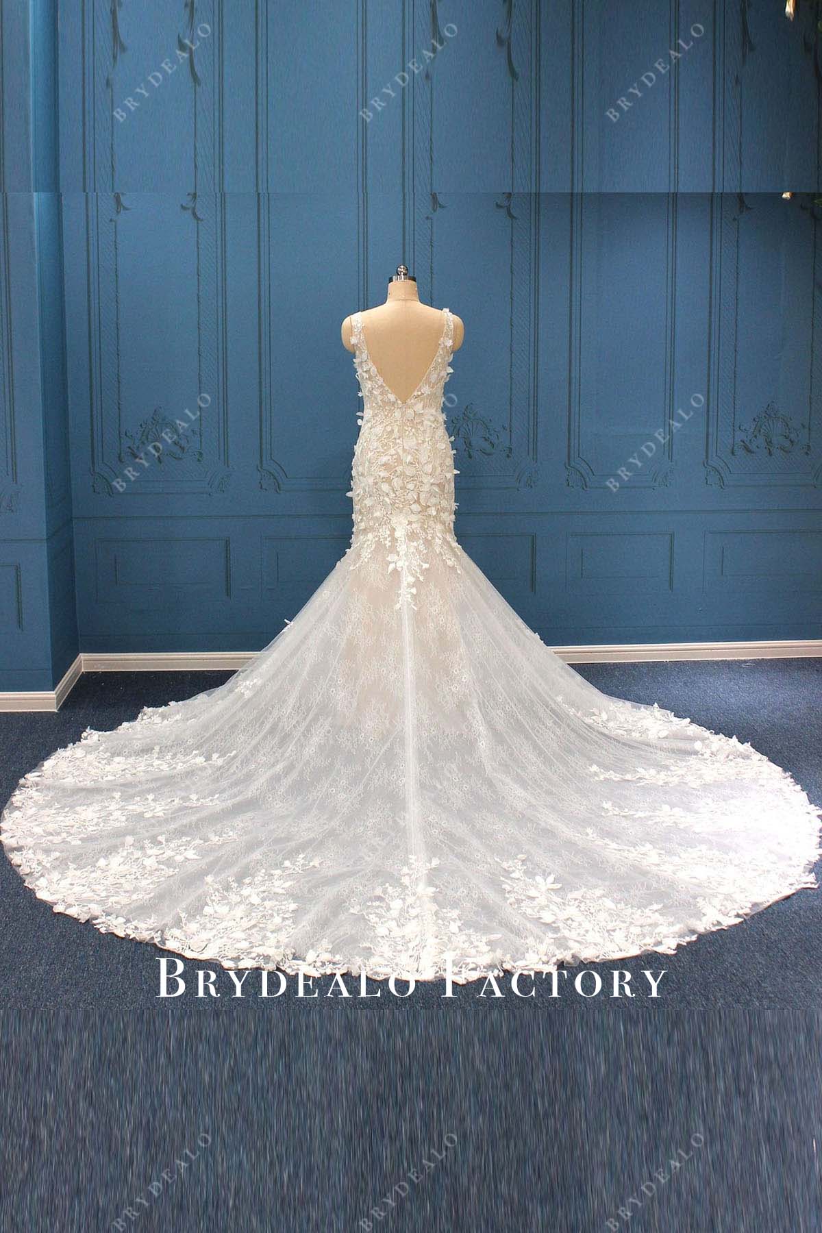 Lace Appliques V-Neck Trumpet Long Train Wedding Dress