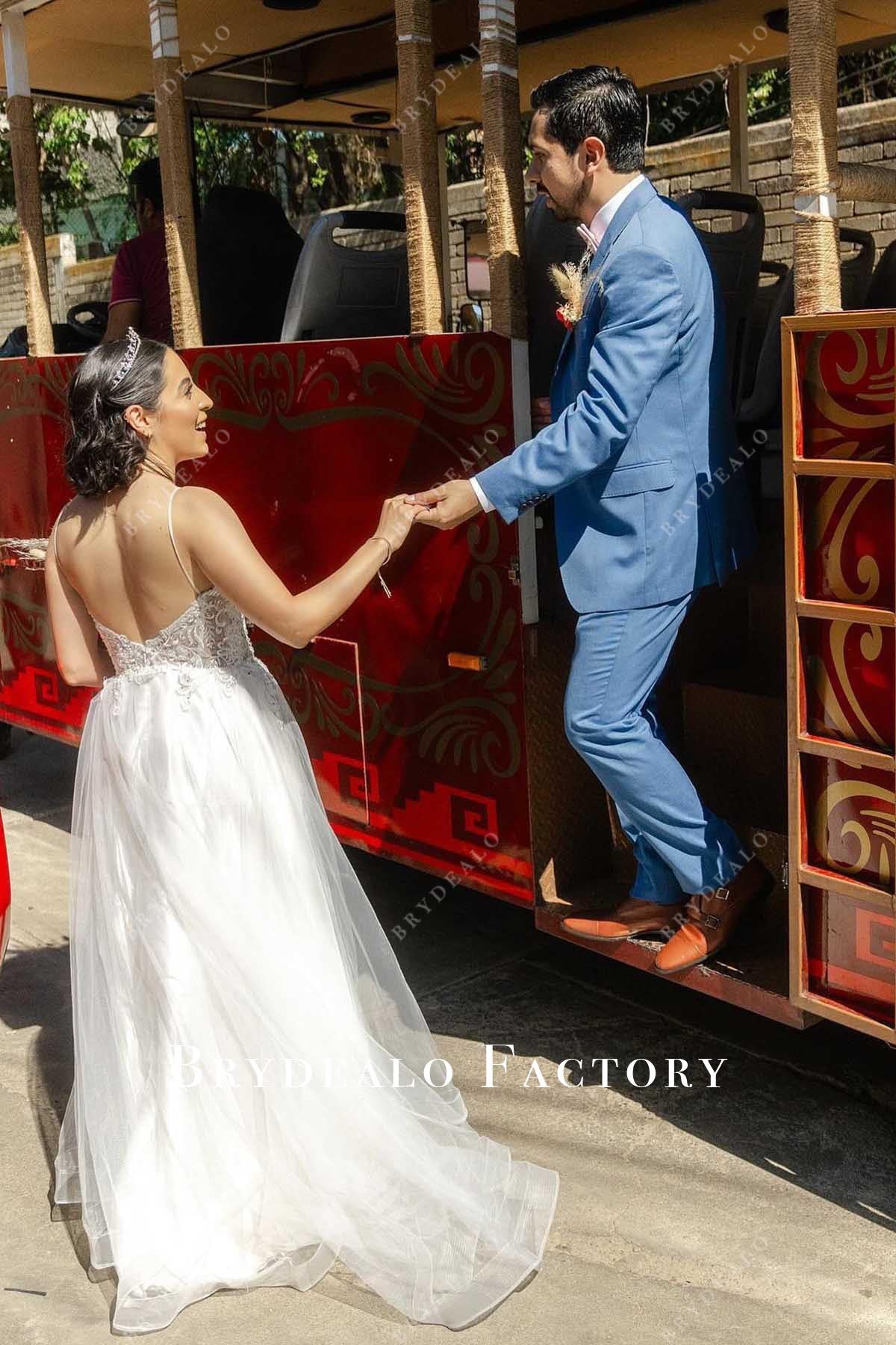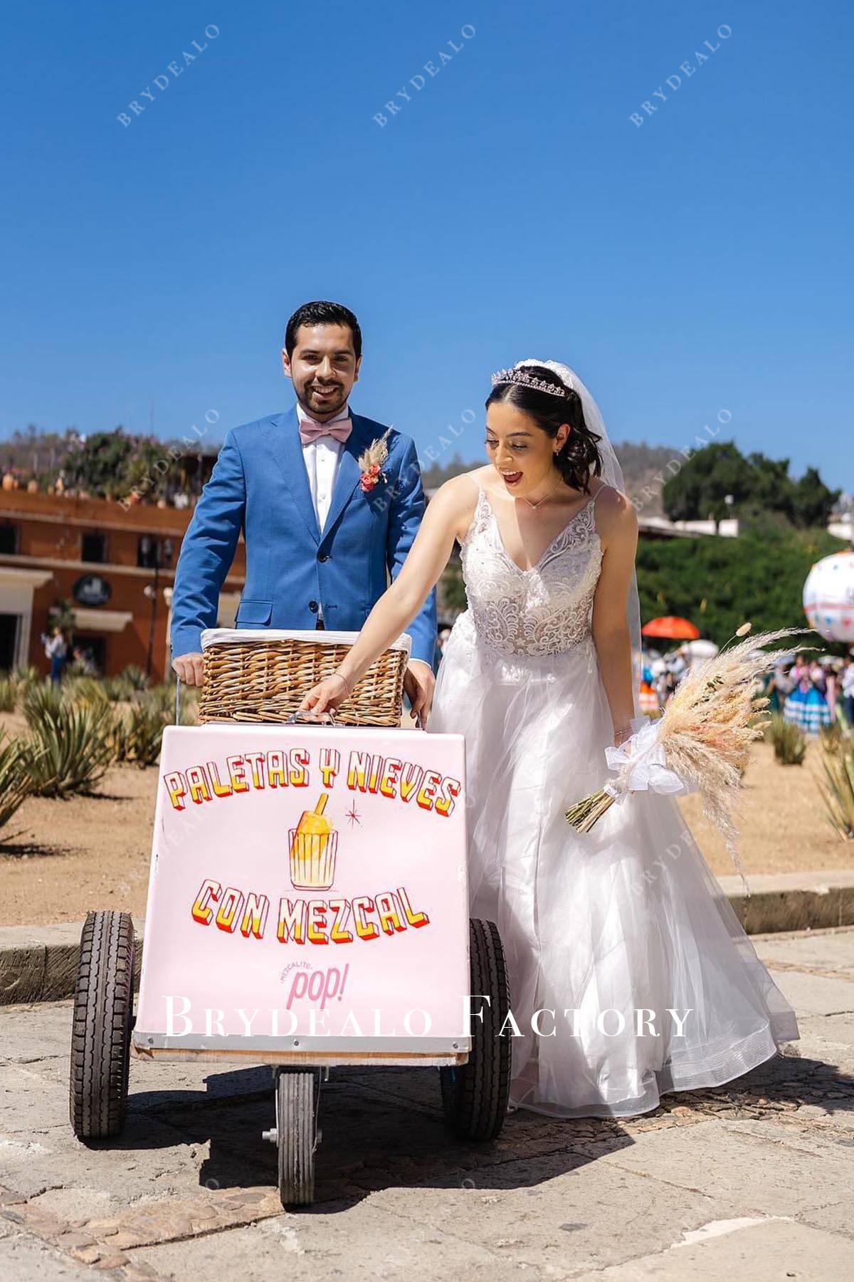 Lace Spaghetti Straps V-Neck A-Line Wedding Dress