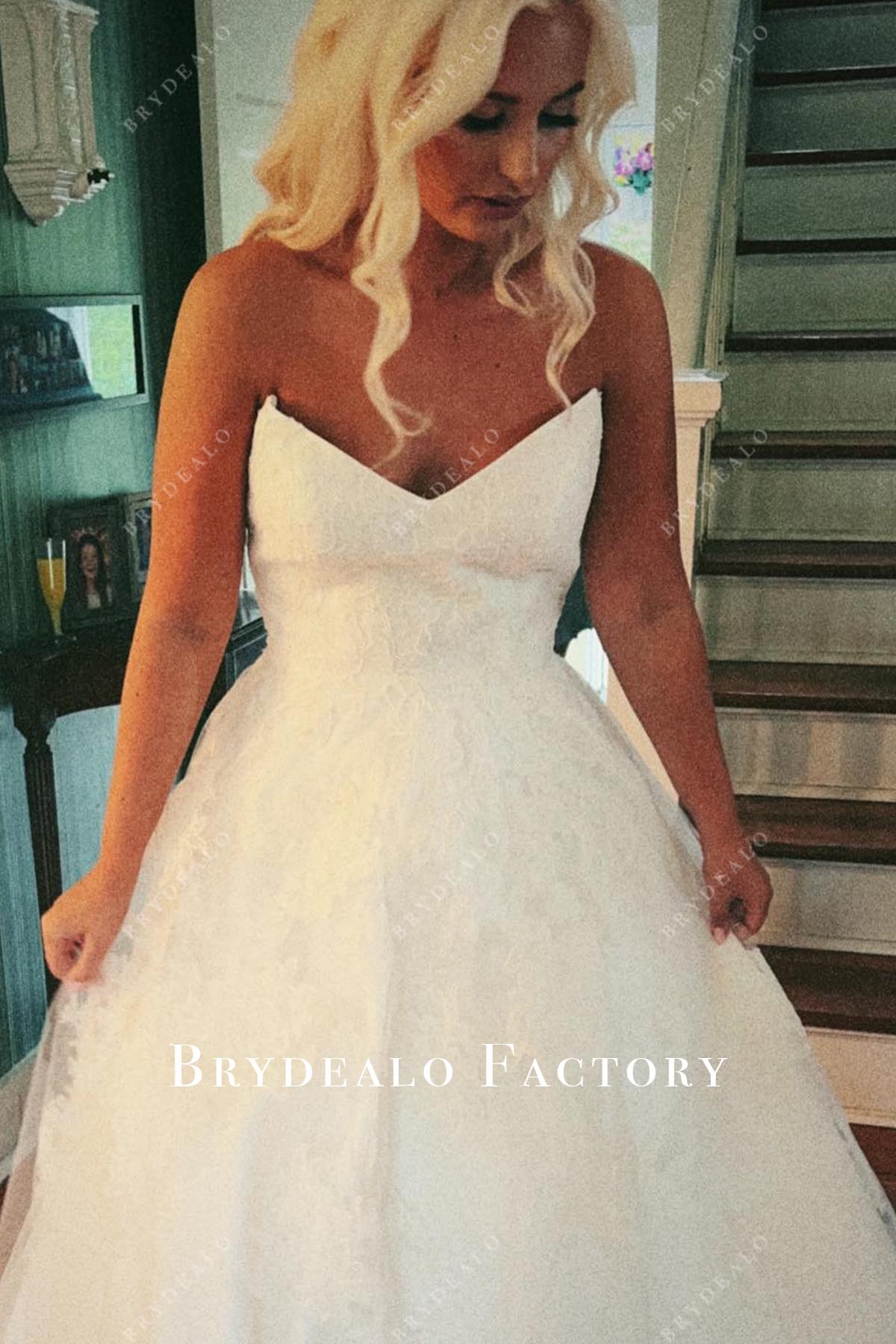 Say "I do" in timeless elegance with our lace strapless wedding dress! Featuring a flattering V-neckline, a classic A-line silhouette, and a graceful court train for a romantic, unforgettable look.
