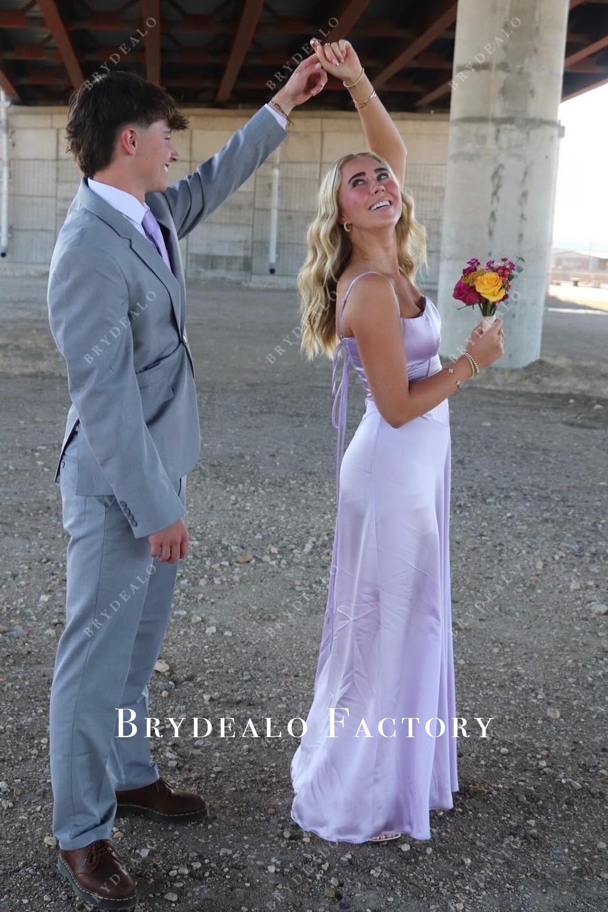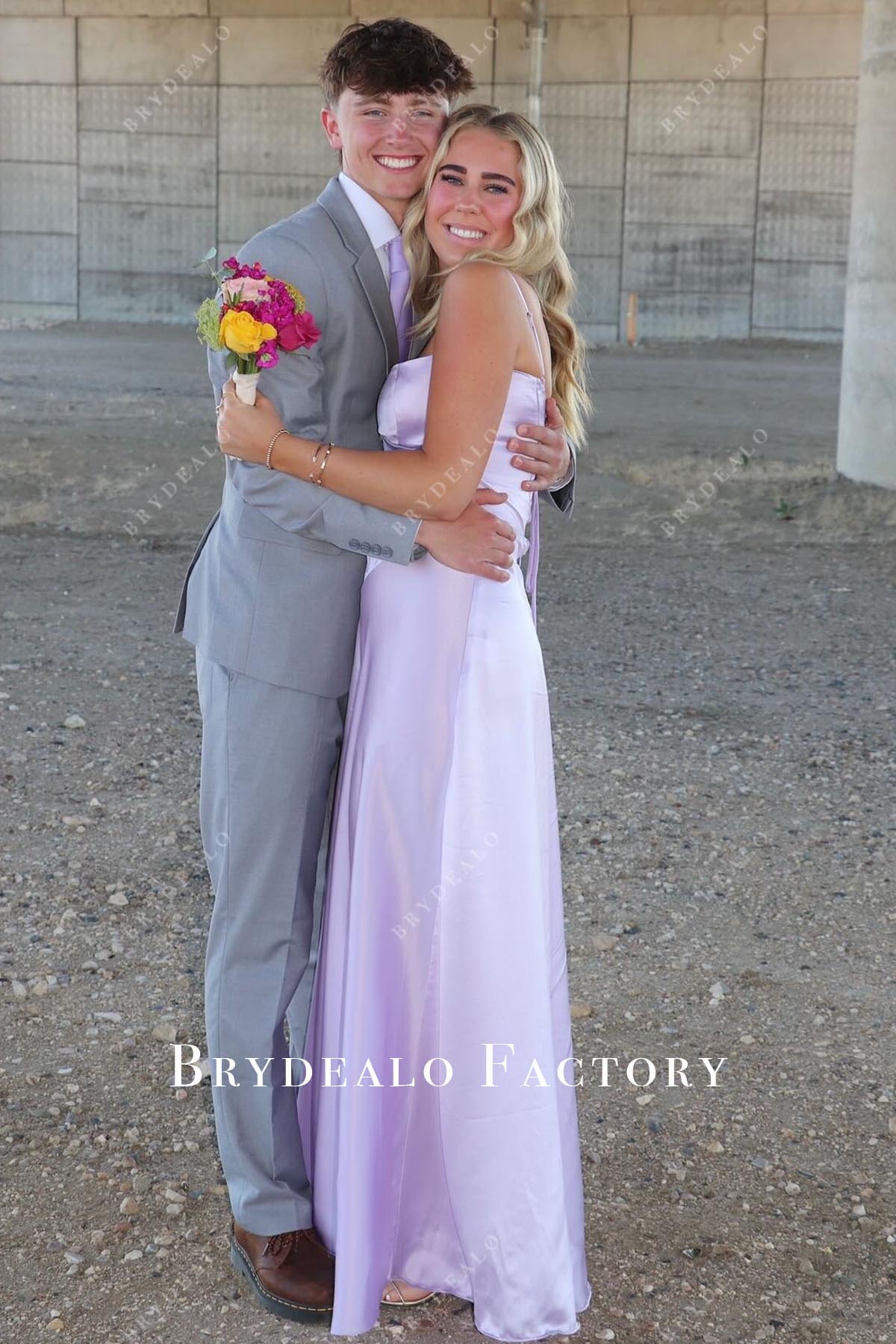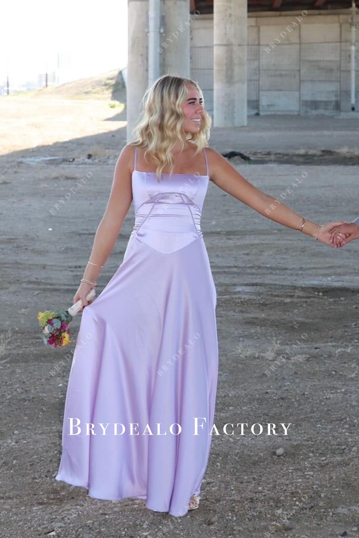 Lilac Spaghetti Straps Square Neck A-Line Prom Dress