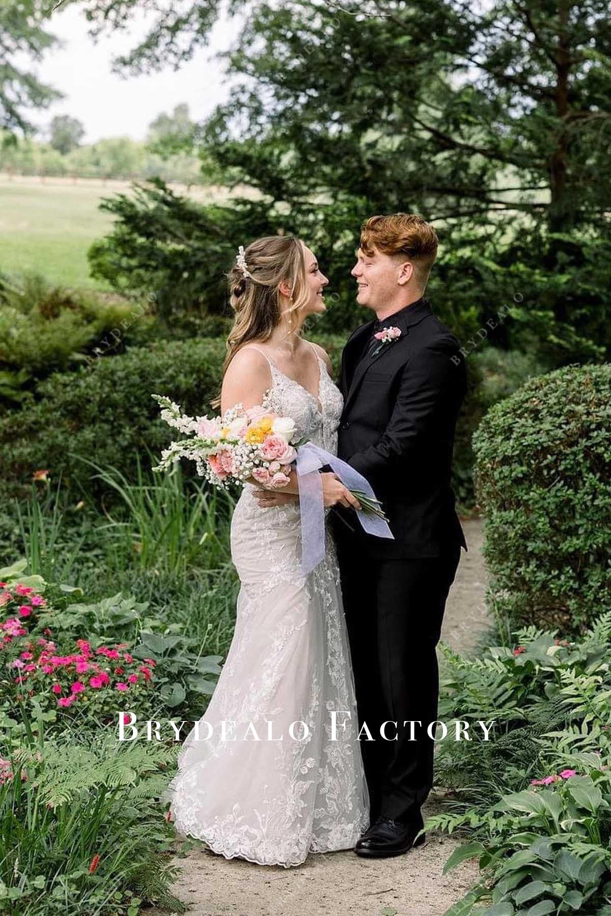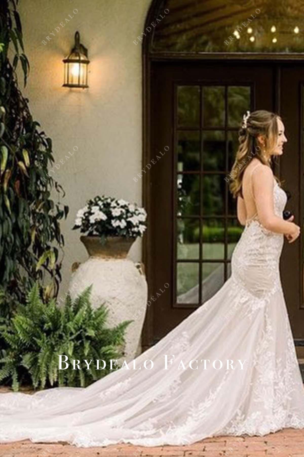 Lace Spaghetti Straps Low Back Mermaid Wedding Dress