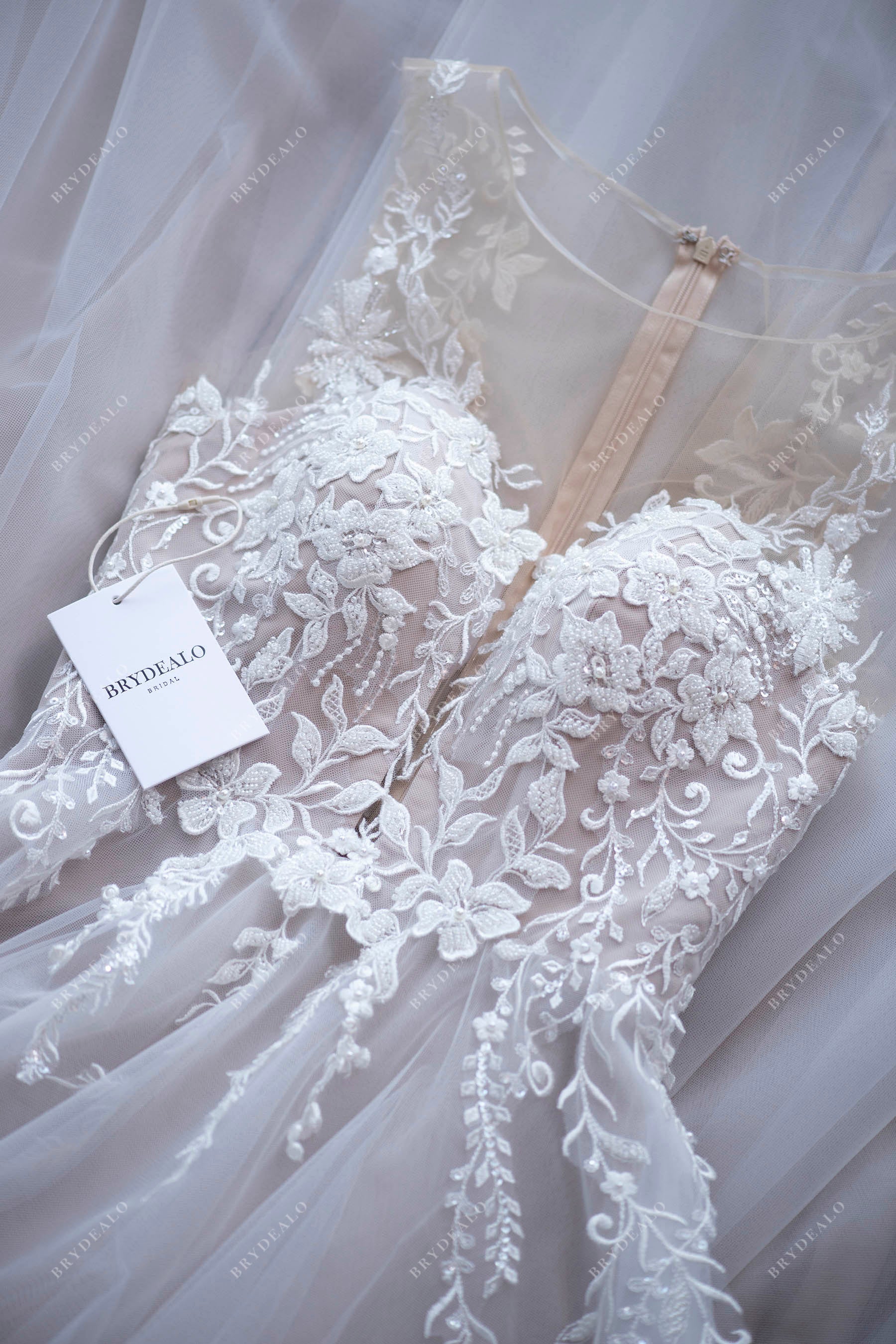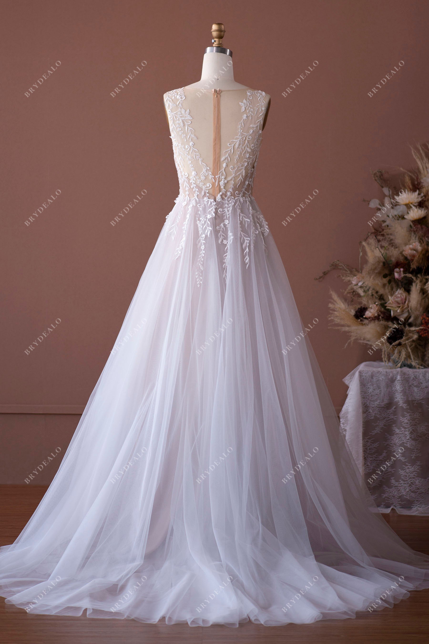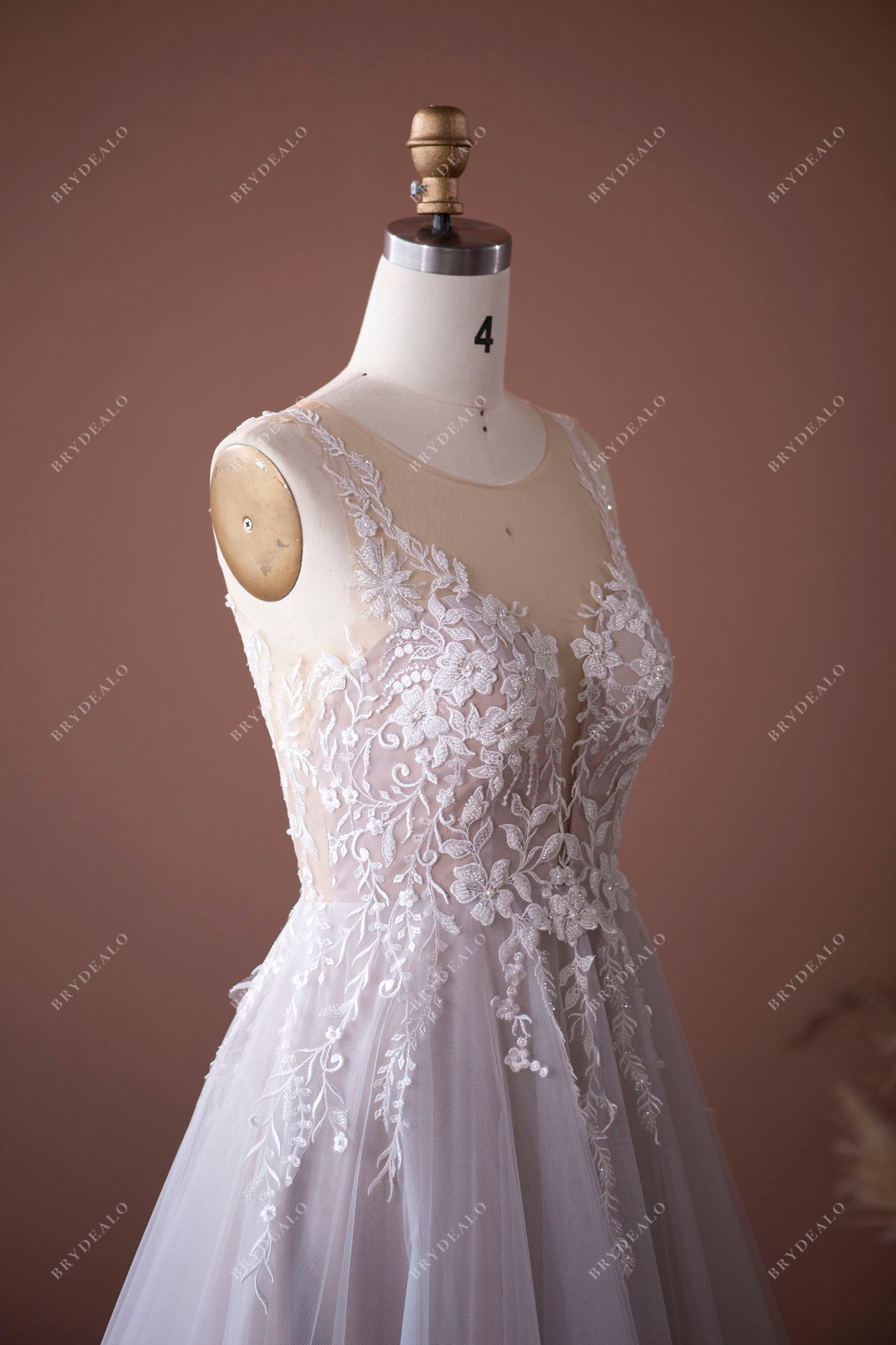 Nude Beige Sleeveless Romantic Beaded Lace A-line Bridal Dress