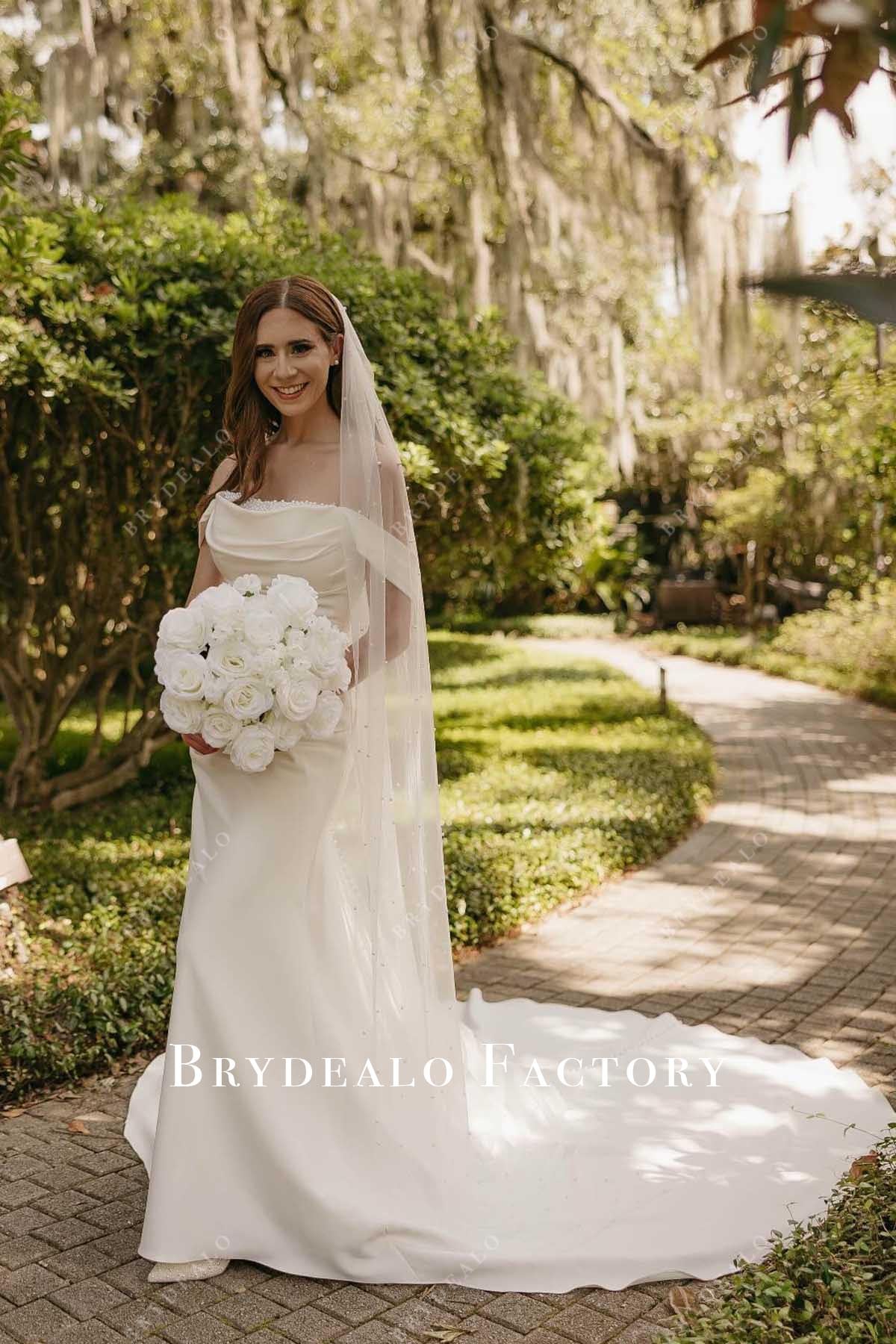 Off Shoulder Cowl Neck Mermaid Wedding Dress