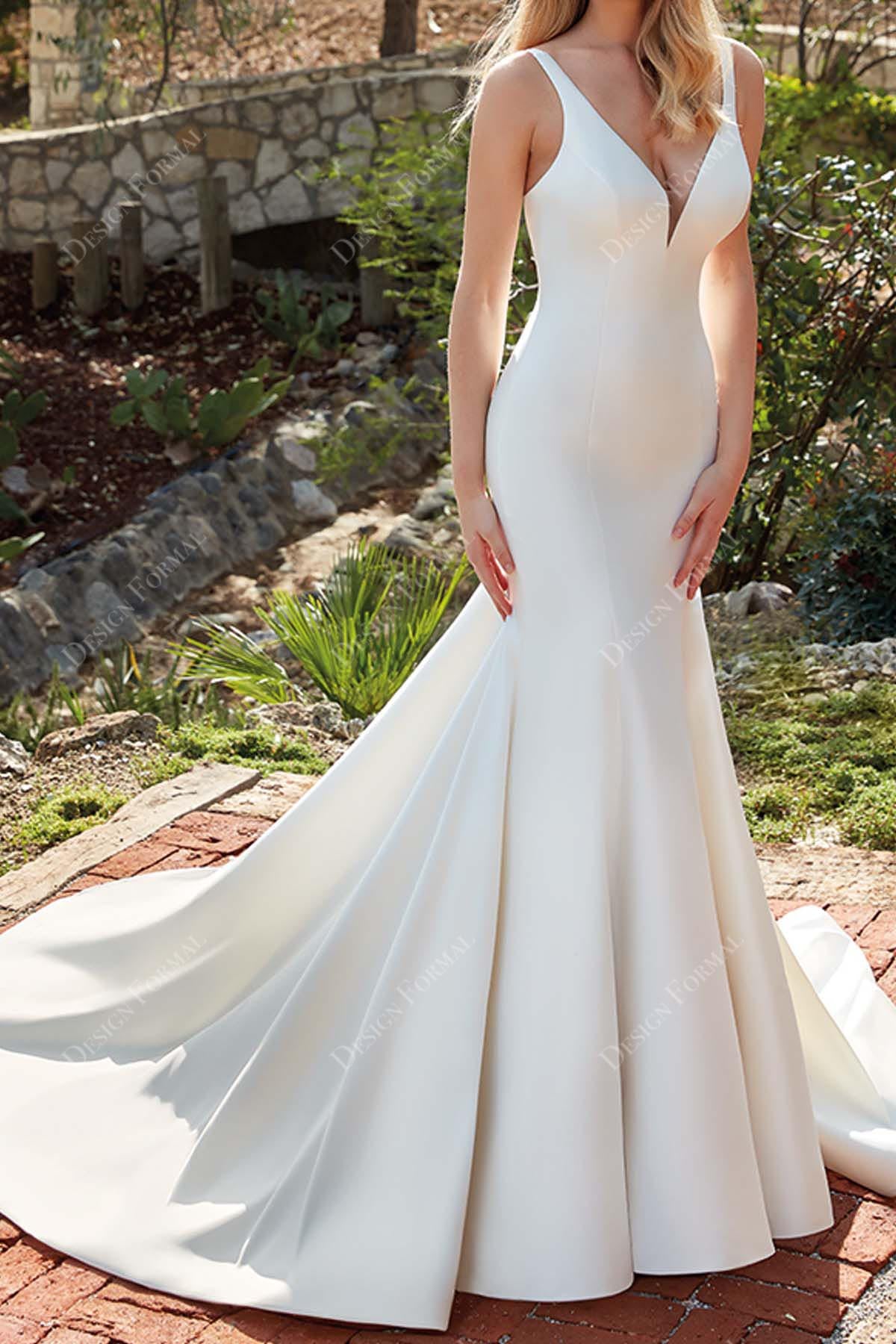Plunging Sleeveless Satin Mermaid Customized Wedding Gown