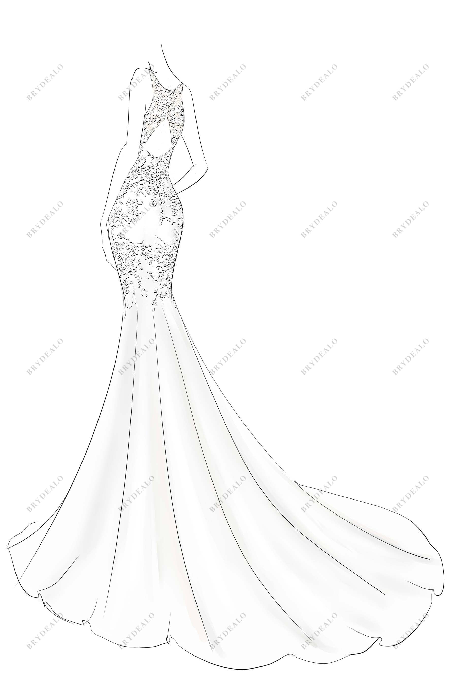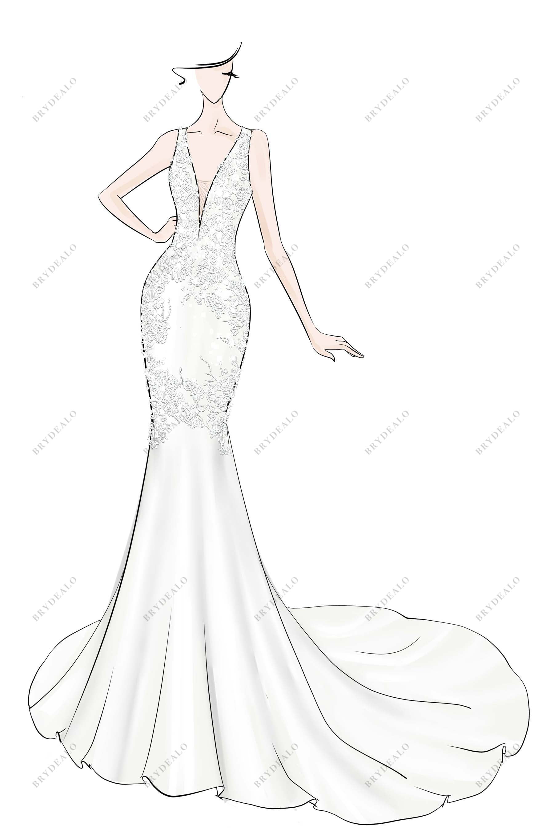 Plunging V-neck Custom-made Lace Satin Mermaid Dress Sketch