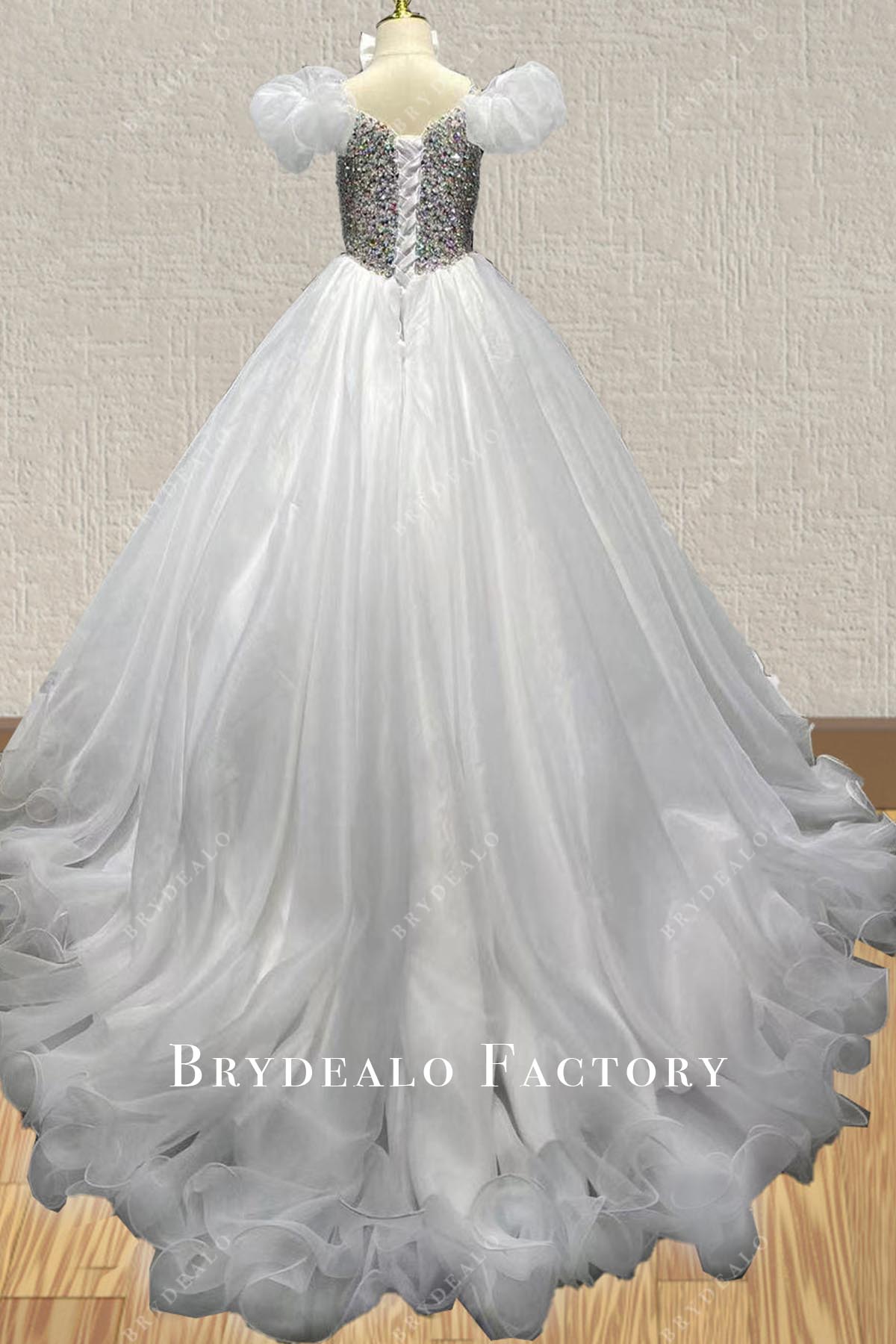 Rhinestones White Cold Shoulder Sleeves A-Line Pageant Dress