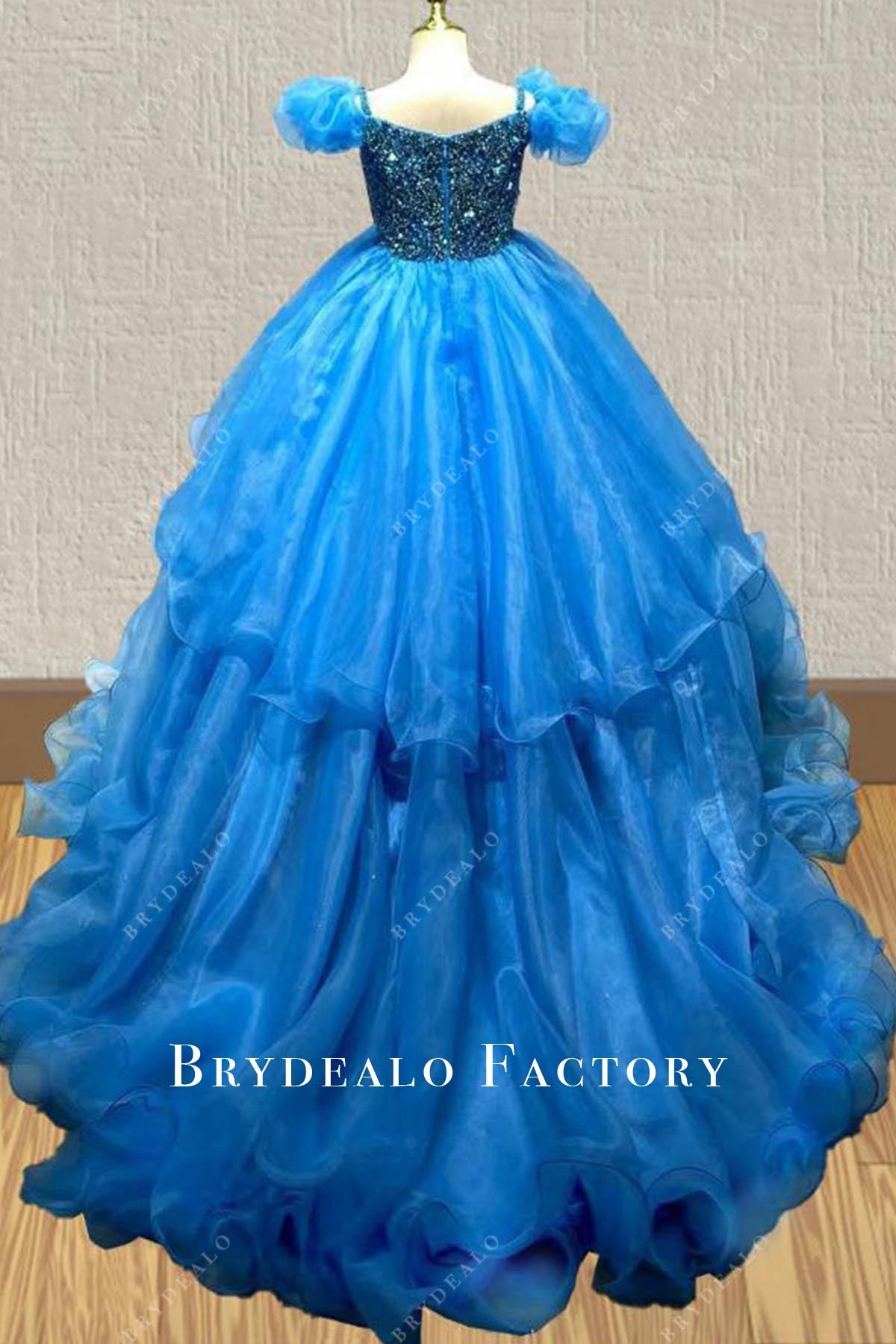 Sparkly Ocean Blue Cold Shoulder Sleeves Pageant Dress