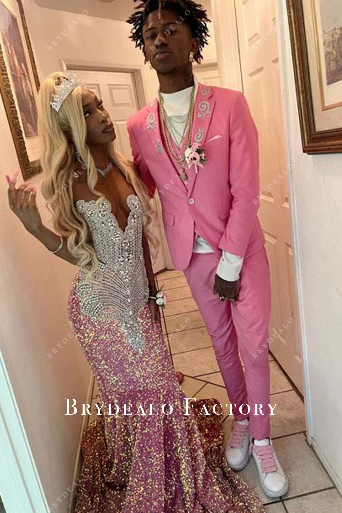 Pink Sequin Strapless Rhinestones Mermaid Prom Dress