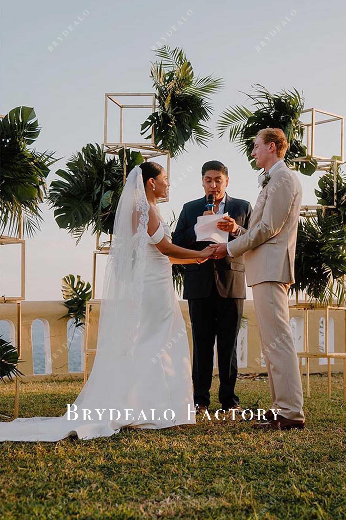 Timeless Off Shoulder Mermaid Chapel Train Wedding Dress