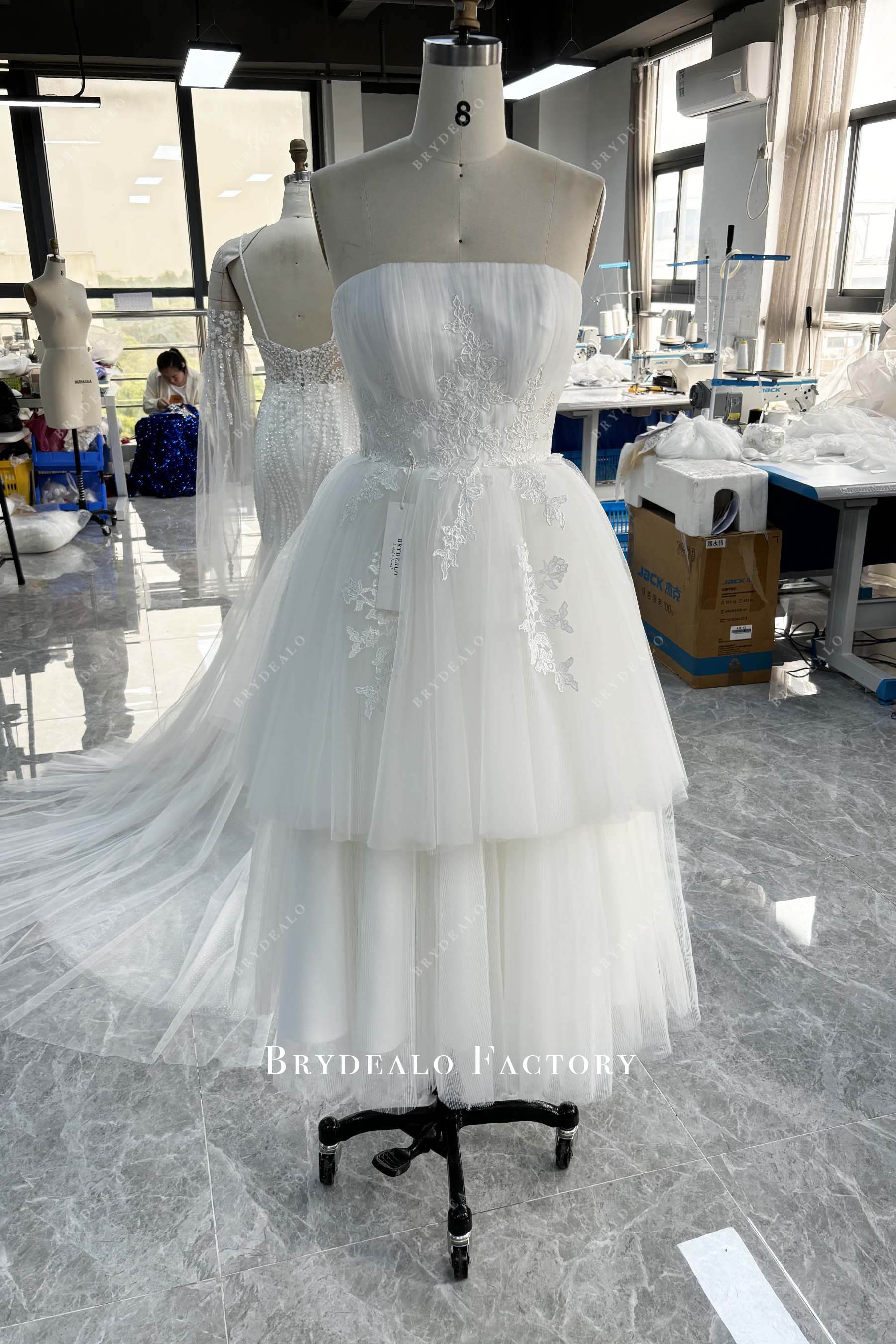 Vintage Strapless Tiered Tulle Short Wedding Dress