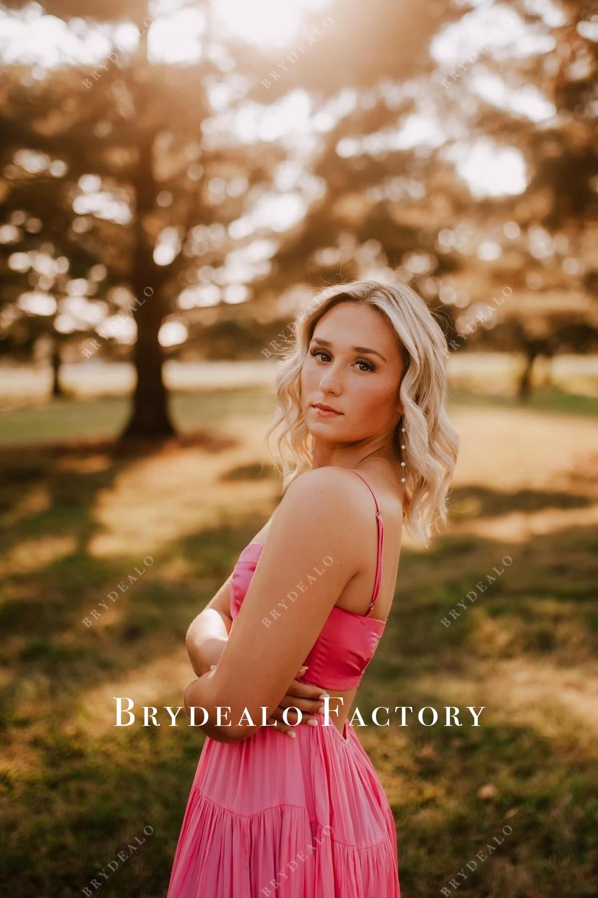 Stand out in this vibrant watermelon formal dress! Designed with elegant spaghetti straps, a flattering V-neckline, and a flowing A-line floor-length skirt, it's perfect for weddings, galas, or any special occasion.
